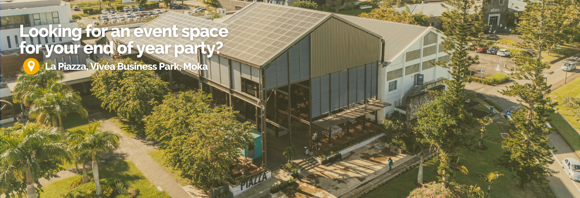 Discover La Piazza, an exceptional event space nestled in the beautiful surroundings of Vivéa Business Park. With over 900m² of fully equipped, covered space, La Piazza offers a versatile setting with a stage, ready-to-use furniture, and all the amenities you need for a seamless event experience.